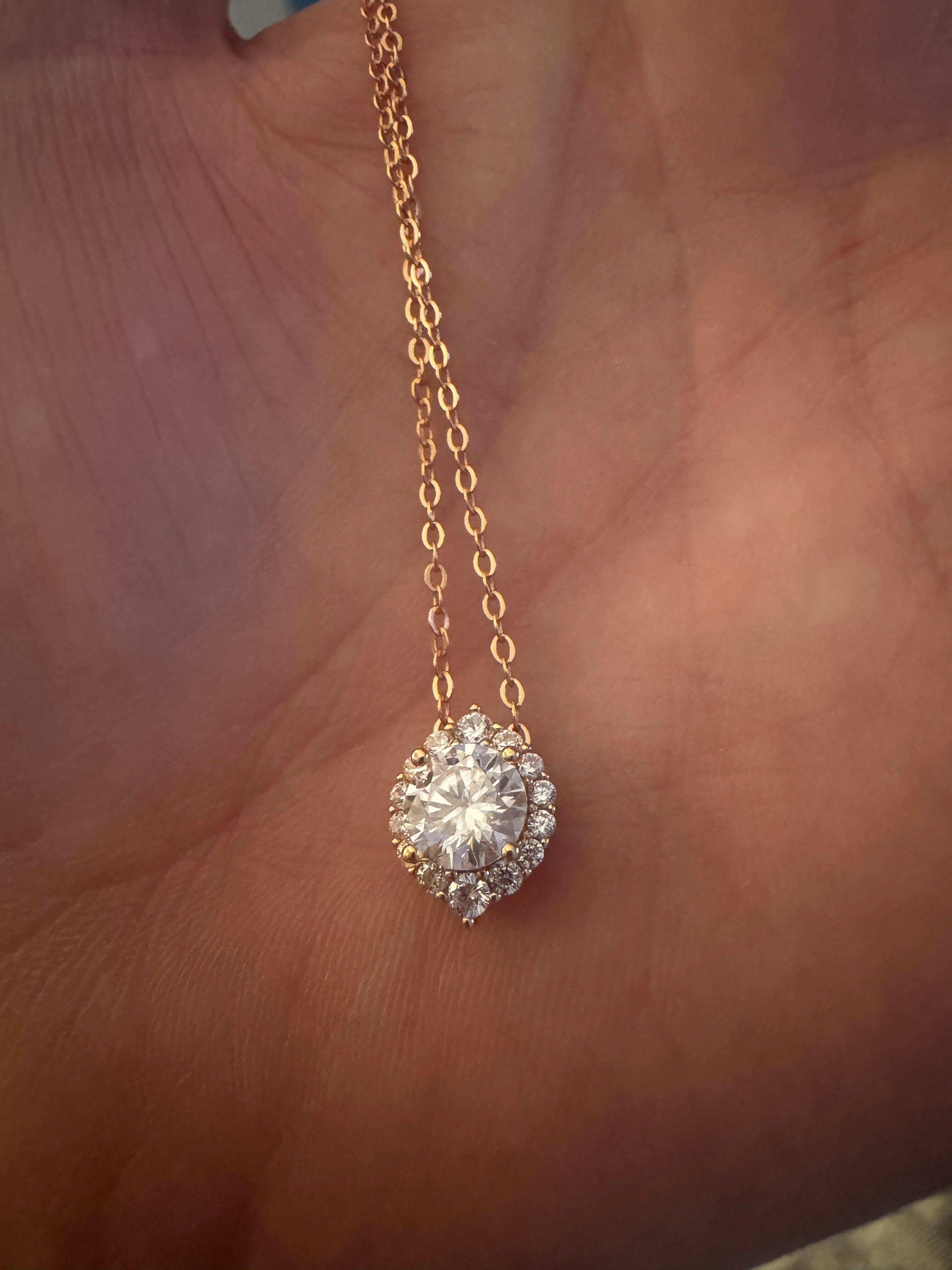 Elevate your style with this delicate rose gold plated necklace, featuring a brilliant moissanite pendant that captures light beautifully. The underlying S925 sterling silver provides a solid, tarnish-resistant base, while the rose gold finish adds warmth and a feminine glow.